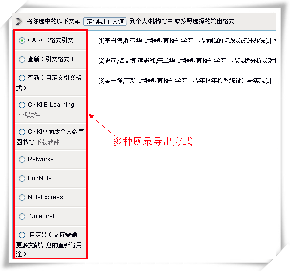 题录导出:可选多种格式