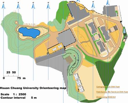 定向运动地图是一种按一定比例尺表示地貌、地物平面位置和高程的正射投影的平面地形图形。