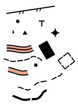 测绘地形图时,由于对某些地物进行了综合、取舍或移位,此外,测绘后实地又有了变化,所以在识别和使用地图时,应注意: