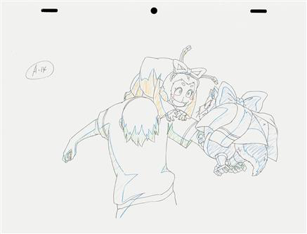 看历届学生描线作业,指出问题所在,提醒学生在练习时候要注意。同时给学生看《银狐》的动画线稿,仔细观摩,并进行描线练习。