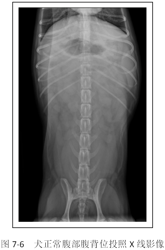 腹部X线评估常用于消化系统(图7-7、7-8、7-9、7-10)、泌尿系统(图7-11、7-12、7-13)、生殖系统(图7-14、7-15、7-16)、以及其他腹膜腔异常(图7-17)检查。