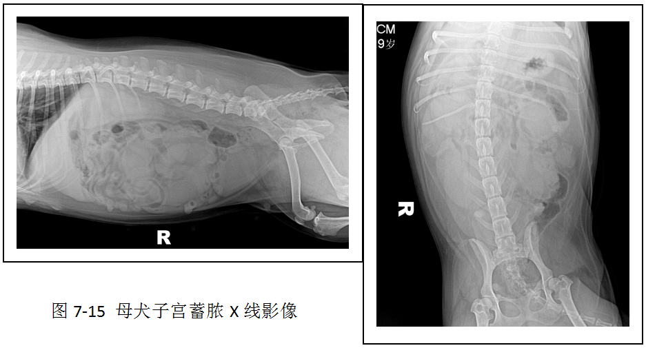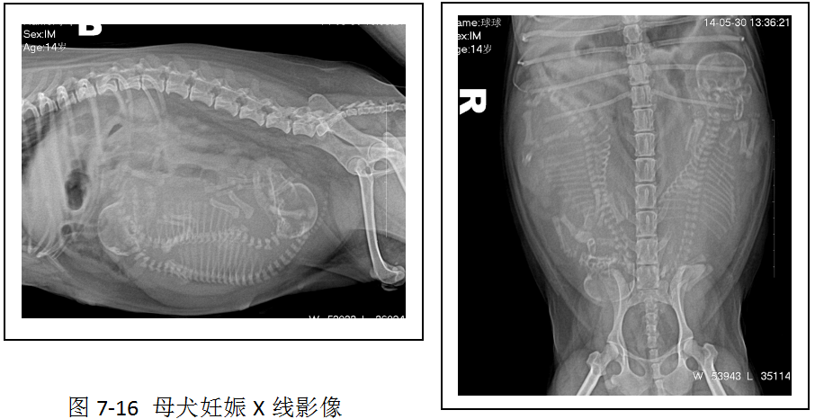平片检查主要用于与子宫相关的腹腔肿块或子宫本身增大,也可用于检查胎儿发育情况、妊娠子宫及患病子宫的进展变化。检查子宫时需要禁食24h和灌肠。未妊娠子宫很难在X线平片上与小肠区别。胎儿骨骼出现钙化的时间约在怀孕后45d,所以X线平片可用于确诊45d后的妊娠检查。