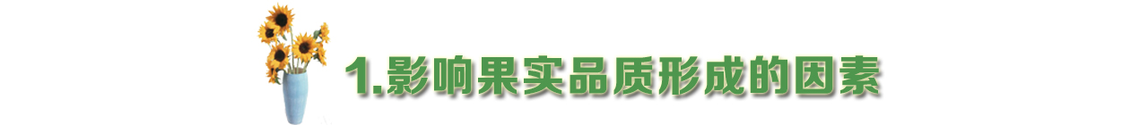 综上所述,果实品质的内容及影响品质的因素极其复杂,使得对于果实品质的研究成果极为有限。除一般果实品质包含的果型均匀美观,上色好,质地适中,风味浓郁,能充分代表本品质特征外,生产上不同品种果实因栽培管理不善,形成畸形果,严重影响品质,甚至丧失商品价值。如番茄蒂腐病,黄瓜的弯曲、大肚瓜、蜂腰瓜,苹果、梨、山楂等仁果灯的裂果、果锈、缩果病,苹果水心病及桃果实青斑病、果肉褐变等在此不一一阐述,有关果实生理病害引起品质变劣的原因及调控措施将在有关各论中提及。今后,随着人民生活的进一步提高,对果实营养成分的要求会引起广泛关注。