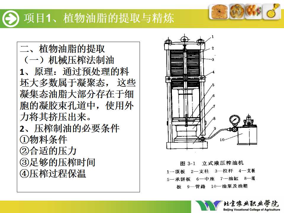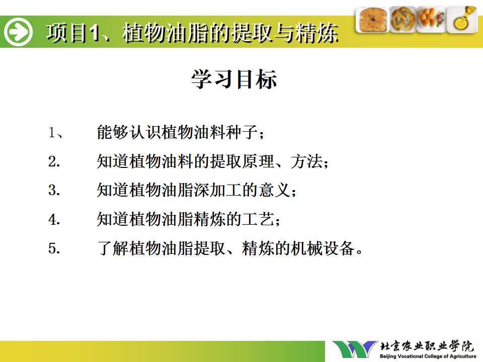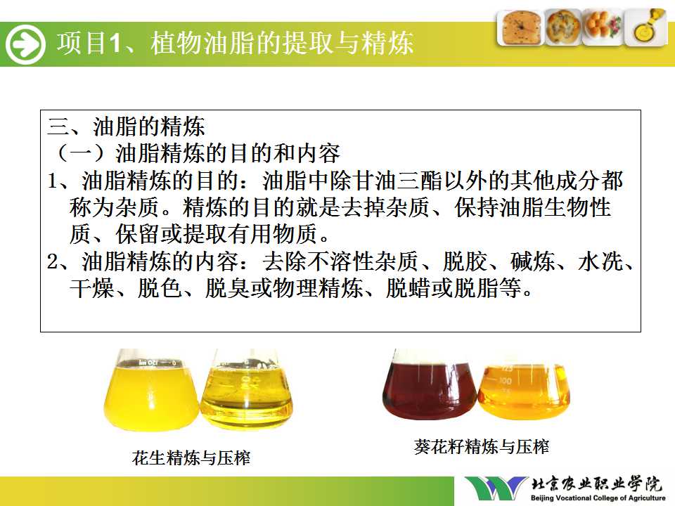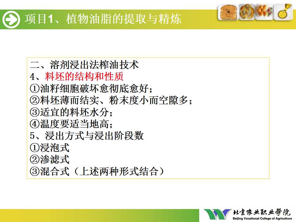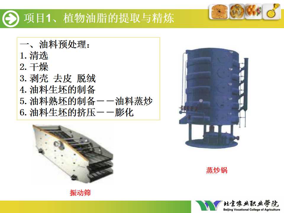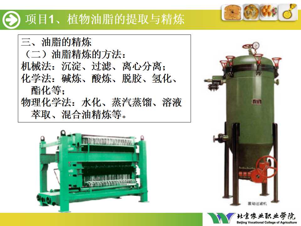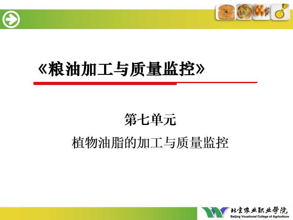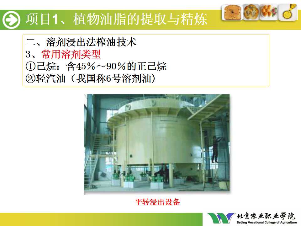 第七单元 植物油脂加工与质量监控(油脂的提取与精炼).ppt(下载附件 2.39 MB)