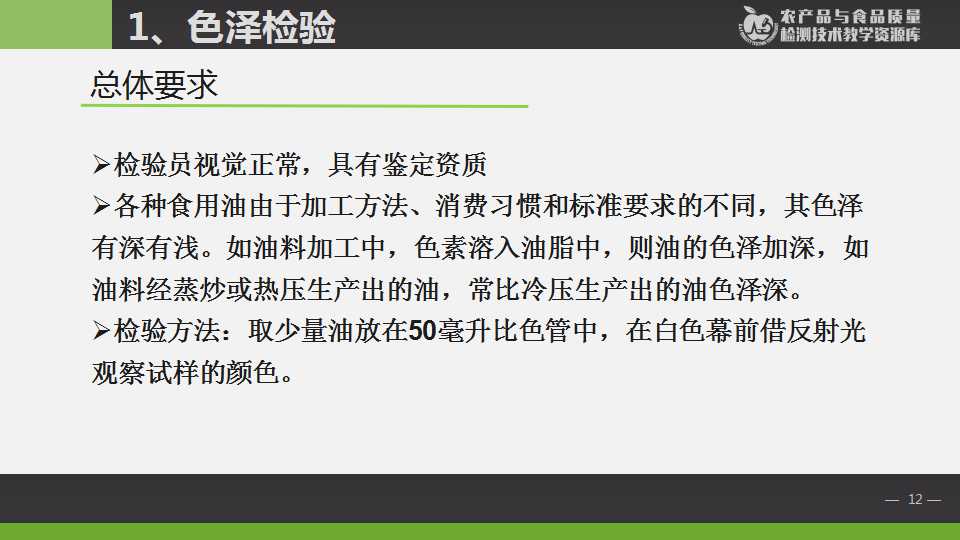 第七单元 植物油脂的加工与质量监控(植物油脂的感官评价).pptx(下载附件 814.62 KB)