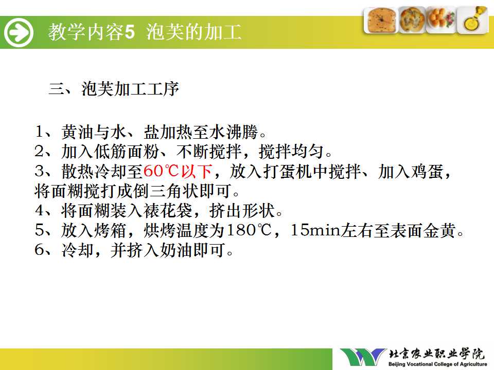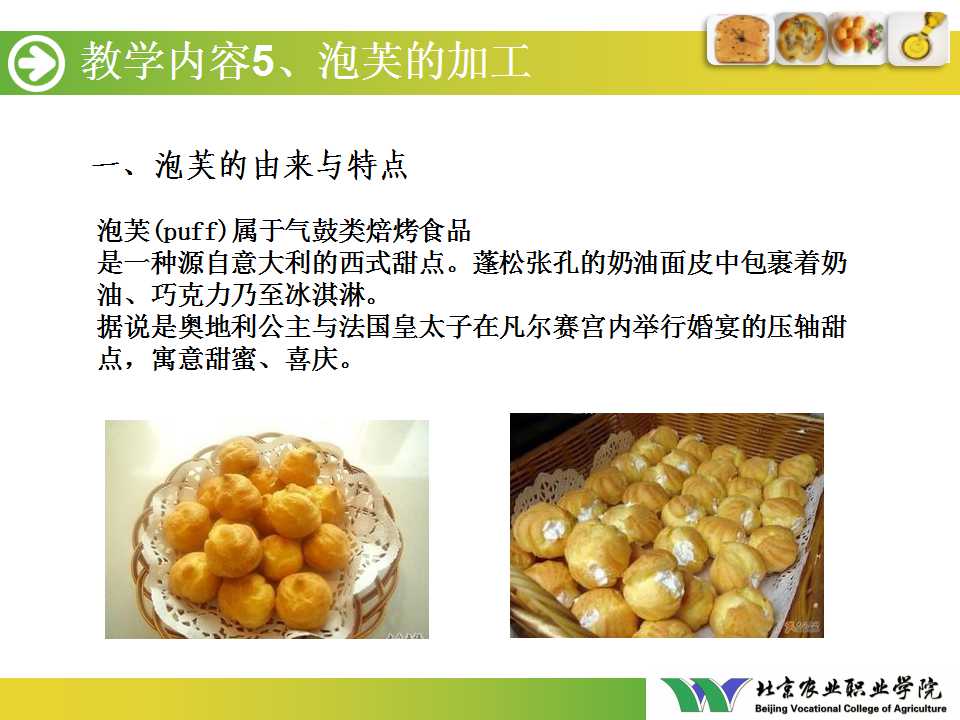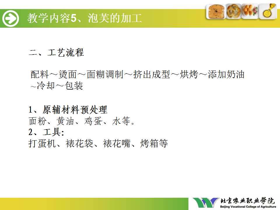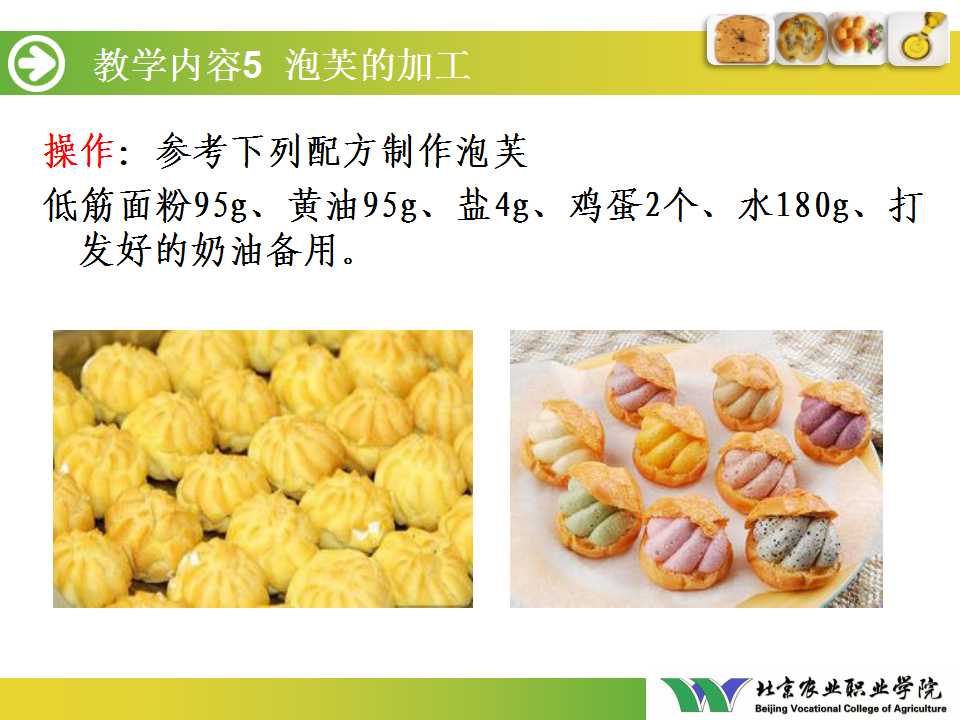 第四单元 烘焙食品加工与质量监控(泡芙的加工).ppt(下载附件 1.1 MB)