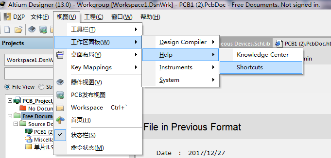 AD版本很多,不同版本的快捷键也不尽相同,可以快速查看各个版本的快捷键列表,SCH图编辑器和PCB图编辑器的快捷键查看方法: