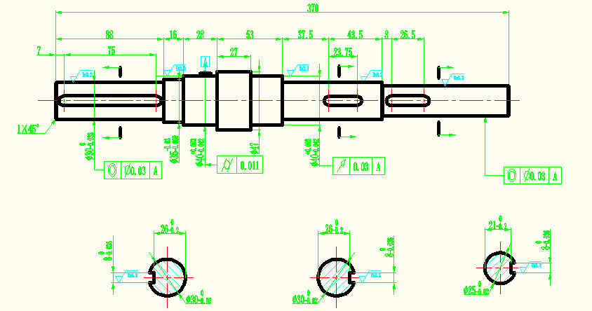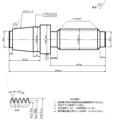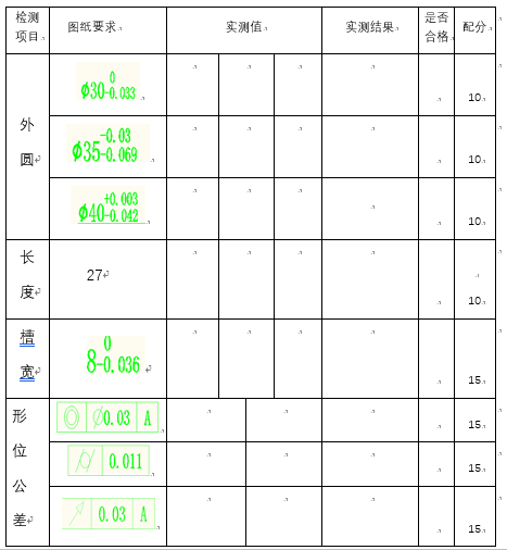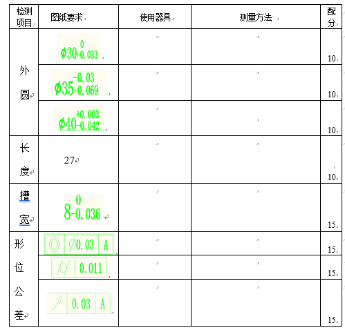 轴类零件大多由位于同一轴线上数段直径不同的回转体组成,轴向尺寸通常大于径向尺寸。根据其结构特点,形位公差一般有圆度误差、圆柱度误差、圆跳动误差、全跳动误差、垂直度误差、对称度误差。分析轴类零件图中形位误差,能检测出形位误差,判断是否合格品。