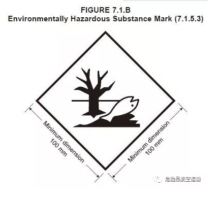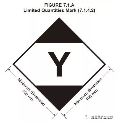 7.1.3.1 标注在包装件和OVERPACK上的所有标记不得被包装的任何部分及附属物,或任何其他标签和标记所遮盖。7.1.4.2(图7.1.A)、7.1.5.3(图7.1.B)、7.1.5.5(图7.1.C)所要求的标记必须体现在包装件的一个面上。当作标签用途使用的标记,标签不得折叠或粘贴时出现在包装件的不同面上。所需标记不得与其它可能影响这些标记效果的包装标记标注在一起。