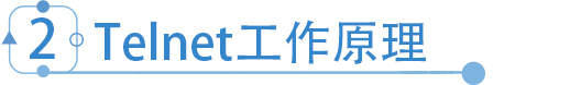 TELNET也使用客户-服务器方式。在本地系统运行 TELNET 客户进程,而在远地主机则运行 TELNET 服务器进程。客户机程序与服务器程序分别负责发出和应答登录请求,它们都遵循Telnet协议,网络在两者之间提供媒介,使用TCP或UDP(User Datagram Protocol)服务。