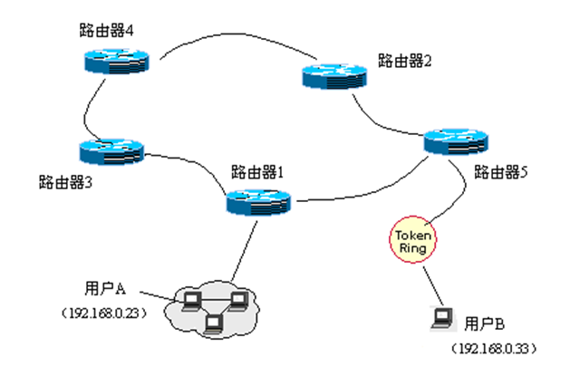 假定用户A需要向用户B发送信息,并假定它们的IP地址分别为192.168.0.23和192.168.0.33。用户A向用户B发送信息时,路由器需要执行以下过程。