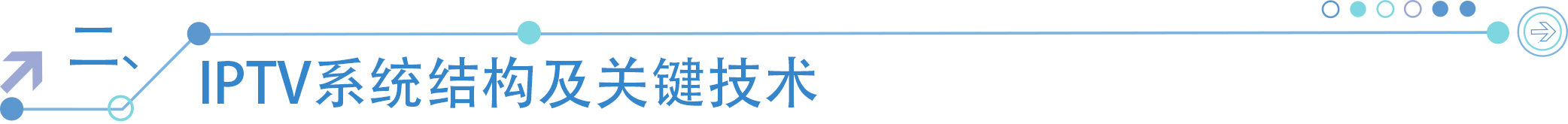 IPTV技术平台采用基于IP宽带网络的分布式结构,以流媒体内容为核心。IPTV系统主要包括IPTV业务平台、IP承载网络和用户接收终端三个组成部分,IPTV技术平台涉及的主要技术包括MPEG-4、 H.264H编解码技术、元数据编目技术、虚报储存技术、流媒体技术、数据版权管理技术、电子节目导航技术、IP可控多播技术、内容分发网技术、宽带接入网技术、IP机顶盒技术和运营管理系统技术等。