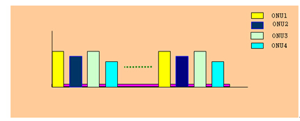 在所有ONU激光器正常的情况下,整个系统主干光纤中的光信号序列在OLT的控制下有序传送,OLT实时调整控制并保证系统正常进行工作。