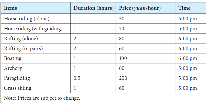 Task 2: The following is an activity information form. Read it and find out the English equivalents for the terms in Chinese below.