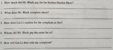 Mr.Black: Yes, actually I have a question. A friend of mine, who was also on a tour to Suzhou, told me that she paid $30 for the evening Suzhou Garden Show. But I remember we paid $45 each for it.