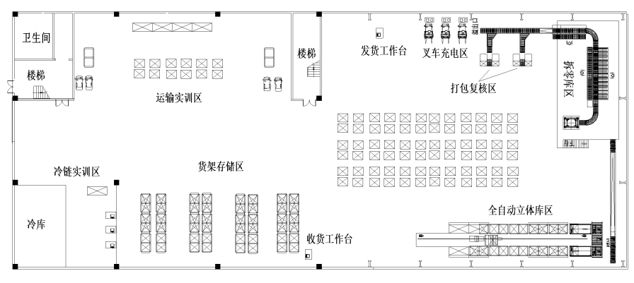 南通商贸物流有限公司将大润发的货物存储于南通市港闸区的综合物流仓储配送中心仓库,并且结合客户的需要,将大润发的货物安排了对应的储区,在储存过程中若遇到实际储存情况与储区储位安排冲突时可做相应的调整。仓库的布局图如图所示: