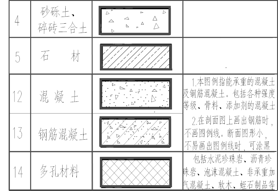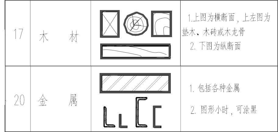(2)不指明材料:用45度等间距的细线画出。