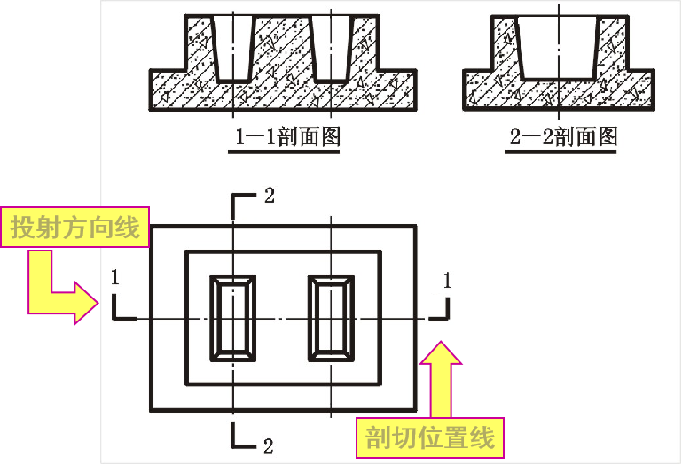 剖切平面一般为投影面平行面,根据结构需要也可采用投影面垂直面。