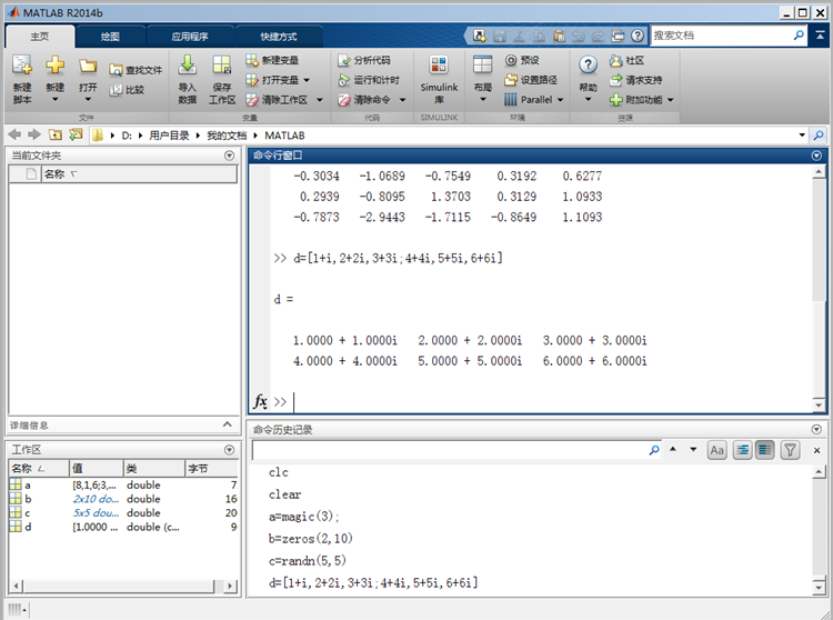 历史命令窗口主要记录所有执行过的命令,可为生成M文件、新命令与表达式提供编辑内容。
