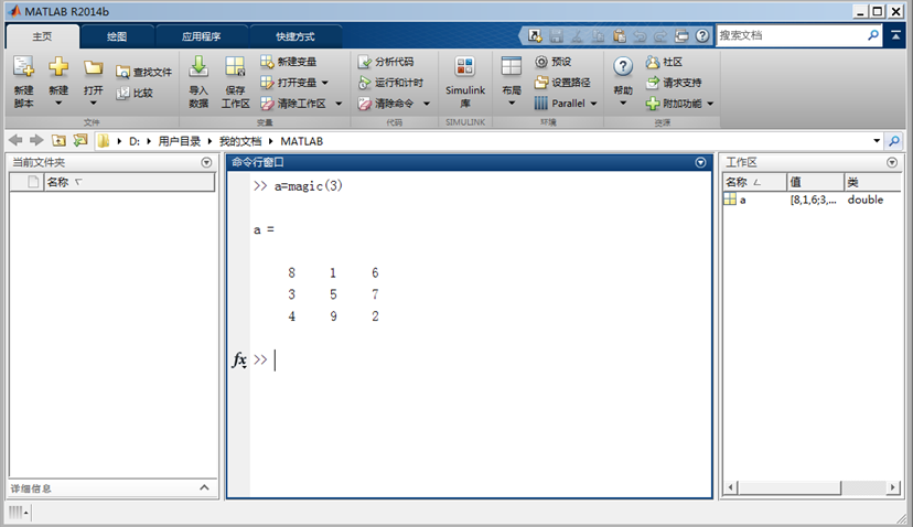(2)命令和表达式后加“;”,执行后结果将保存于工作空间中,不在窗口中显示。