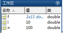 调用时,“a=100;”定义变量a,值等于100;语句“y=ffibno2(a)”实现了对ffibno2函数的调用,变量a的值100传递给了函数的输入参数n,经函数运算得到f值,函数将输出变量f的值传递给工作空间的变量y,函数运行结束,此时观察工作空间只有a、y两个变量。