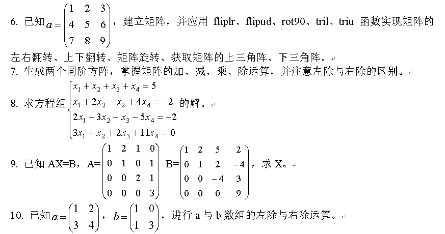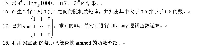 3. 采取逐个元素输入法、冒号生成法、全下标元素赋值法建立矩阵。