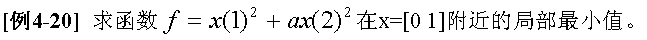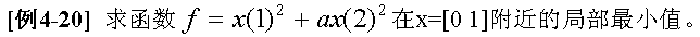 说明:在初值x0附近寻找函数最小值。fun为M文件的函数句柄或匿名函数,x为对应最小值的自变量取值。使用options选项来指定优化器的参数。输出变量fval返回函数最小值。