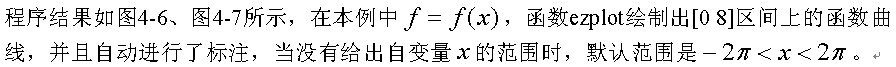 图4-6应用fplot函数绘图 图4-7 应用ezplot函数绘图