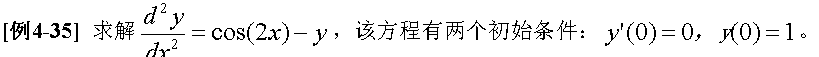 >> y=dsolve(' D2y=cos(2*x)-y ',' Dy(0)=0 ',' y(0)=1 ')