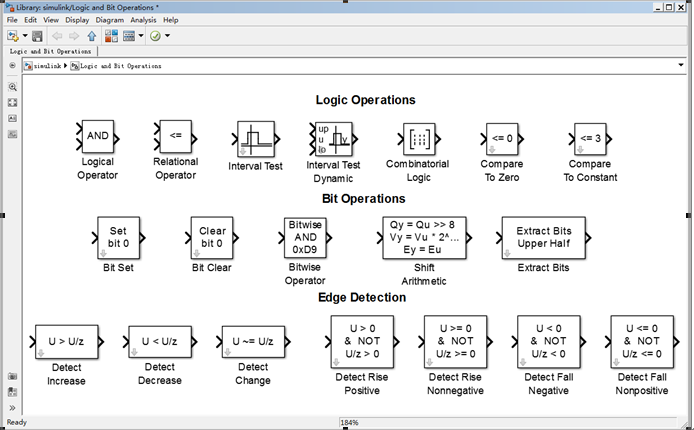 • Relational Operator:关系运算,对输入信号进行关系运算,输出为逻辑值。