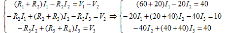 采用网孔法,列出电流方程如下: