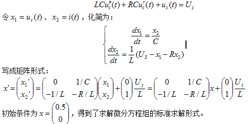 以电容两端的电压为变量,可得到微分方程: