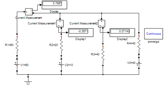 disp('流过电阻R2支路电流'),disp(i(1)-i(2));