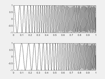 说明:产生扫频信号,时刻零的瞬时频率为f0,时刻t1的瞬时频率为f1,phi指定初始相位。method有三种: