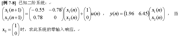 说明:求由系统的状态空间模型表示的LTI离散时间系统由初始状态x0所引起的输出y和状态响应x。
