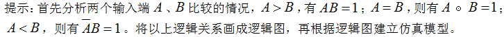 5.利用Simulink模块搭建一位二进制比较器的仿真模型。