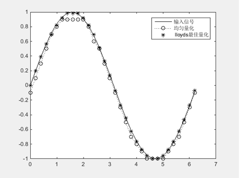 legend('输入信号','均匀量化',' lloyds最佳量化');