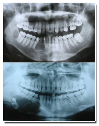 好发年龄,10-29岁,40-50岁,男多于女,多累及下颌骨,特别是磨牙及升支部,上颌第一磨牙,单发或多发,多发者可伴痣样基底细胞癌综合征 特殊的生长方式,沿颌骨前后方向生长,多数病人无明显症状,较大时颌骨膨胀,继发感染时出现疼痛、瘘管形成,X线表现单房或多房性透光区,边缘有扇形切迹,类似成釉细胞瘤、含牙囊肿。