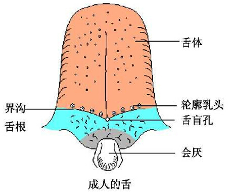 舌盲孔前方有时可见小块菱形或椭圆形红色区,此区的舌乳头有不同程度的萎缩,称为正中菱形舌。以前认为这是舌发育时,奇结节未消失形成的残留,对健康无害。近年来的研究证实正中菱形舌与局限性慢性真菌感染,特别是白色念珠菌感染有关。