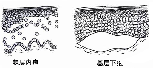 在组织学上根据疱形成的部位可分: