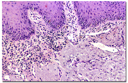 口腔黏膜由上皮及上皮下结缔组织构成,其结构与皮肤基本相似,上皮相当于皮肤的表皮,固有层与黏膜下层相当于皮肤的真皮。上皮借基底膜与固有层相连。发生于口腔黏膜的疾病,其病变皆出现在上皮层、基底层或上皮下结缔组织。