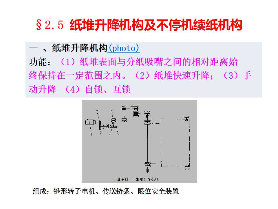 2.5 纸堆升降机构及不停机续纸机构