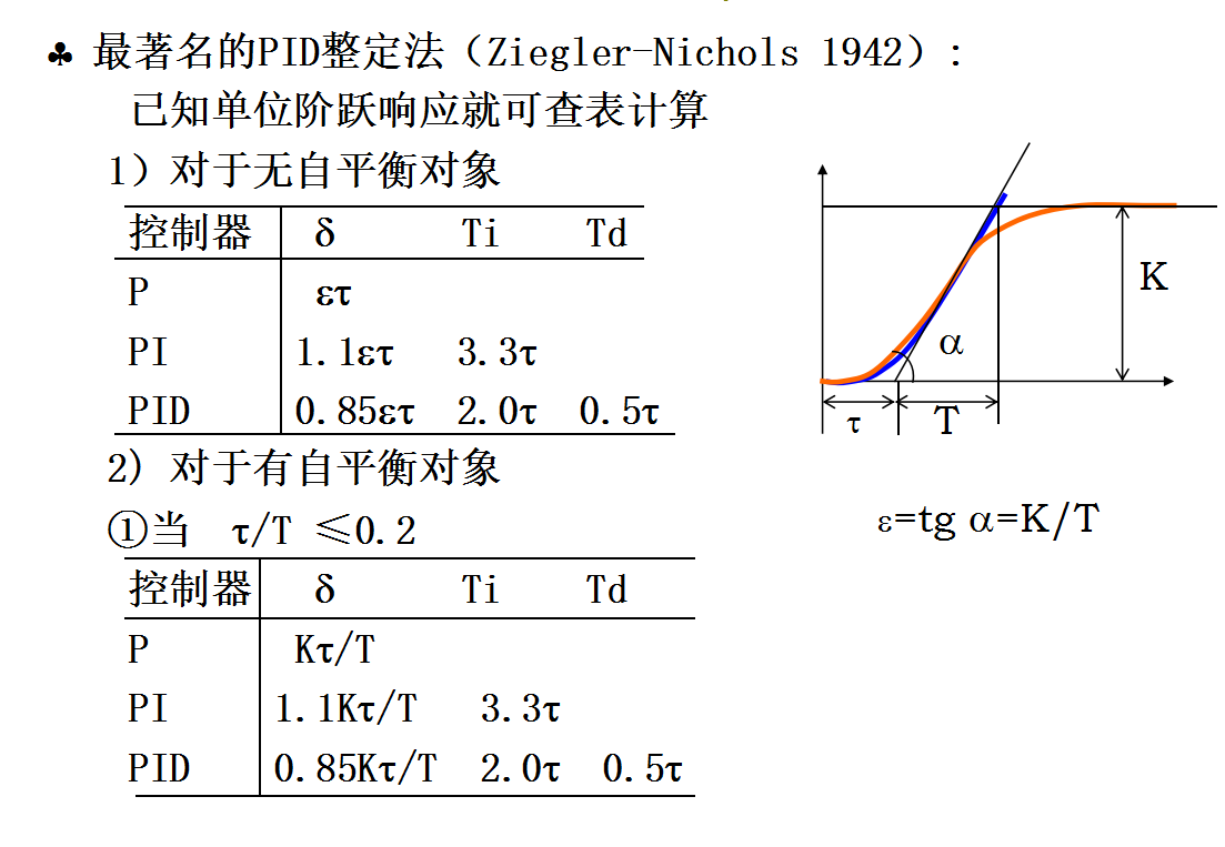 第二种Z-N法适合于受控过程模型已知的情况。据阶跃响应曲线可判断属于无自平衡类型或有自平衡类型,然后提取出受控过程模型参数