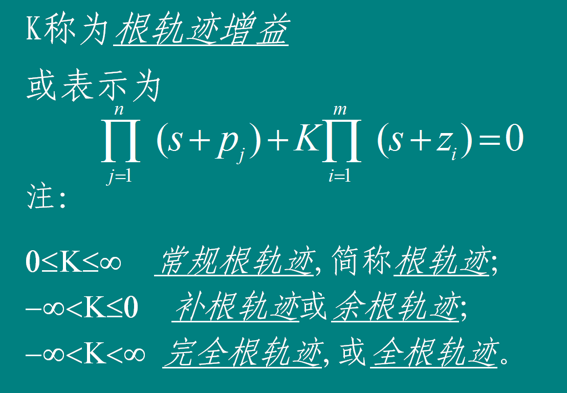 根轨迹:开环传函某个参数由0→ 时闭环特征根在S平面上移动的轨迹。