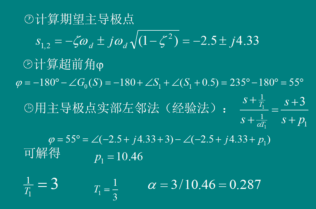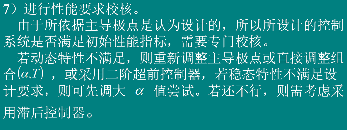 据标准二阶系统与性能指标的关系算出初步主导极点位置。注意对非 标准二阶系统的修正。