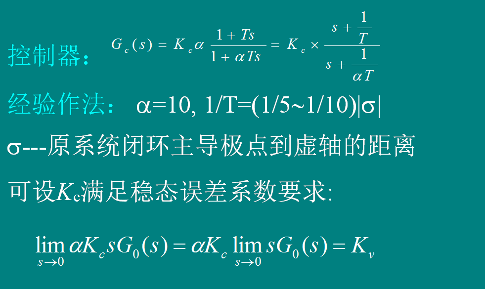 当未校正系统的稳态性能和动态性能均较差时,若仅用超前环节只校正动态性能,若仅用滞后环节只校正稳态性能. 只有同时启用超前环节和滞后环节来校正。这就是用典型滞后-超前环节。
