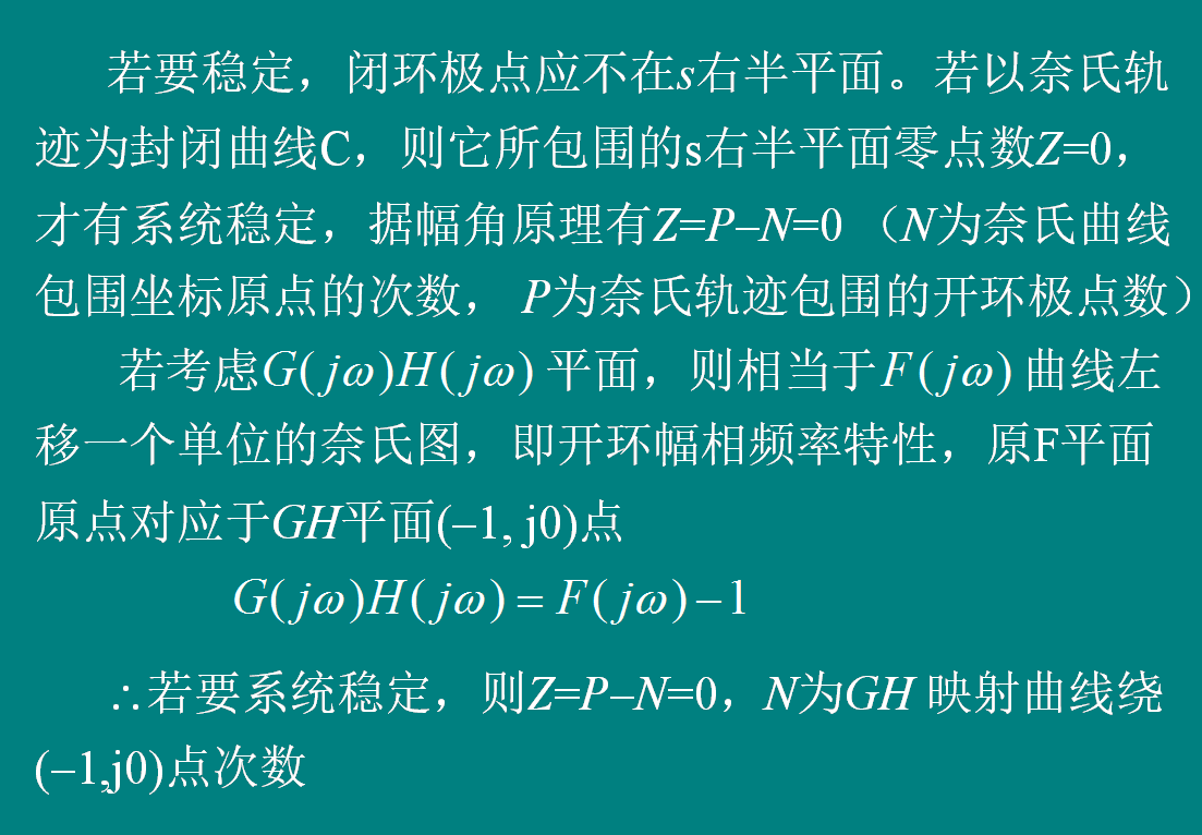 奈氏判据的理论基础是复变函数的幅角原理。应用幅角原理可导出奈氏判据的重要公式: