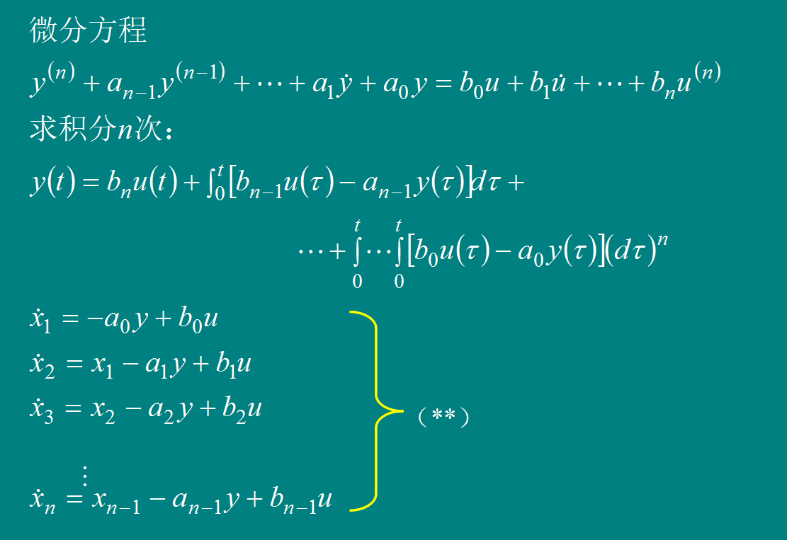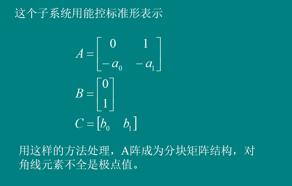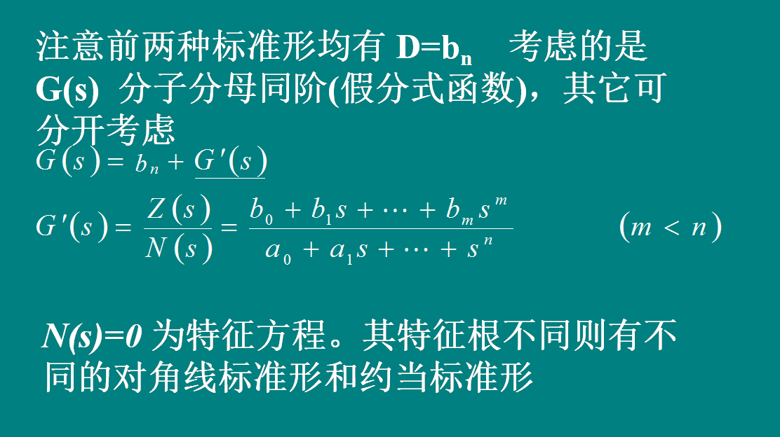 标准形:符合标准化规定的状态空间描述形式,标准形便于分析和处理,便于转换成方框图和传递函数,因为标准形的ABC中元素与系统特征参数直接相关。