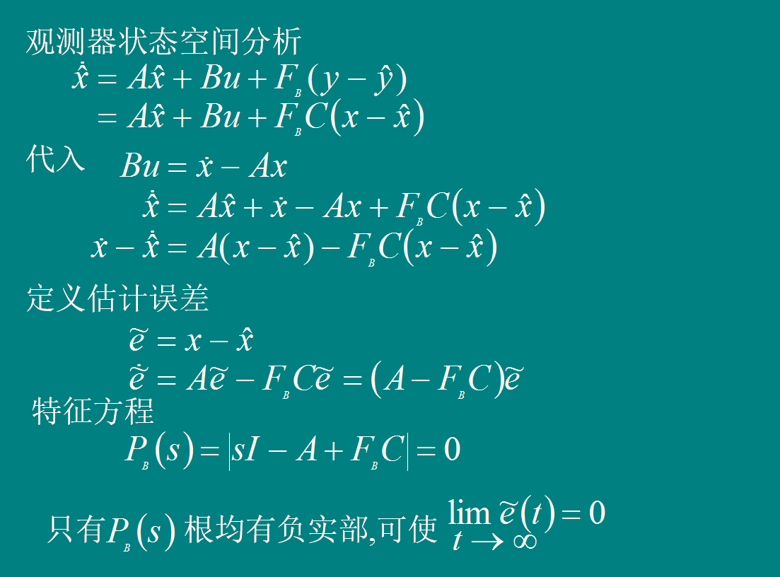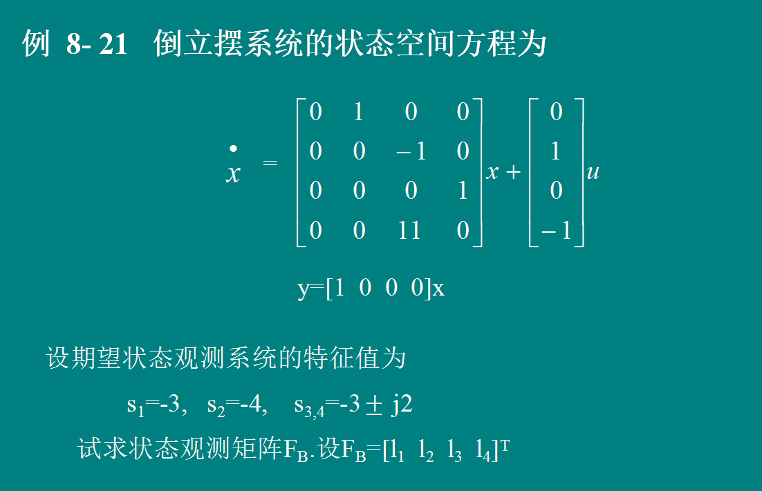 对于图8-11所示系统,只要被观测系统(A,B,C)是完全能观的,则观测系统是可通过FB任意配置。