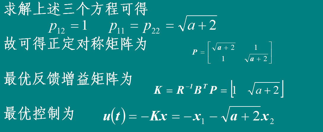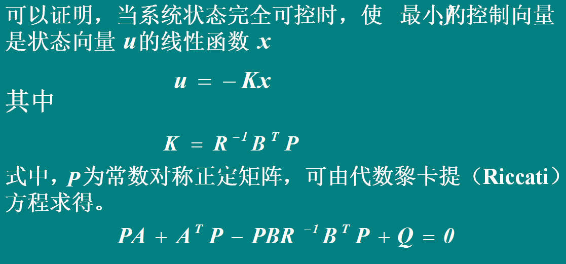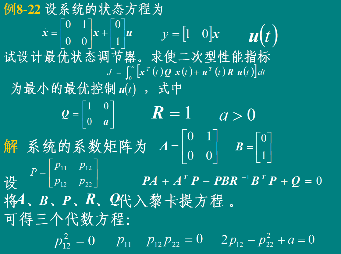 最优控制问题的求解方法很多,较常用的方法有:变分法、极小值(极大值)原理、动态规划法、线性二次型最优控制法,自适应控制法、搜索法和梯度法等等。下面具体介绍较常用的基于二次型最优控制法的最优状态调节器。